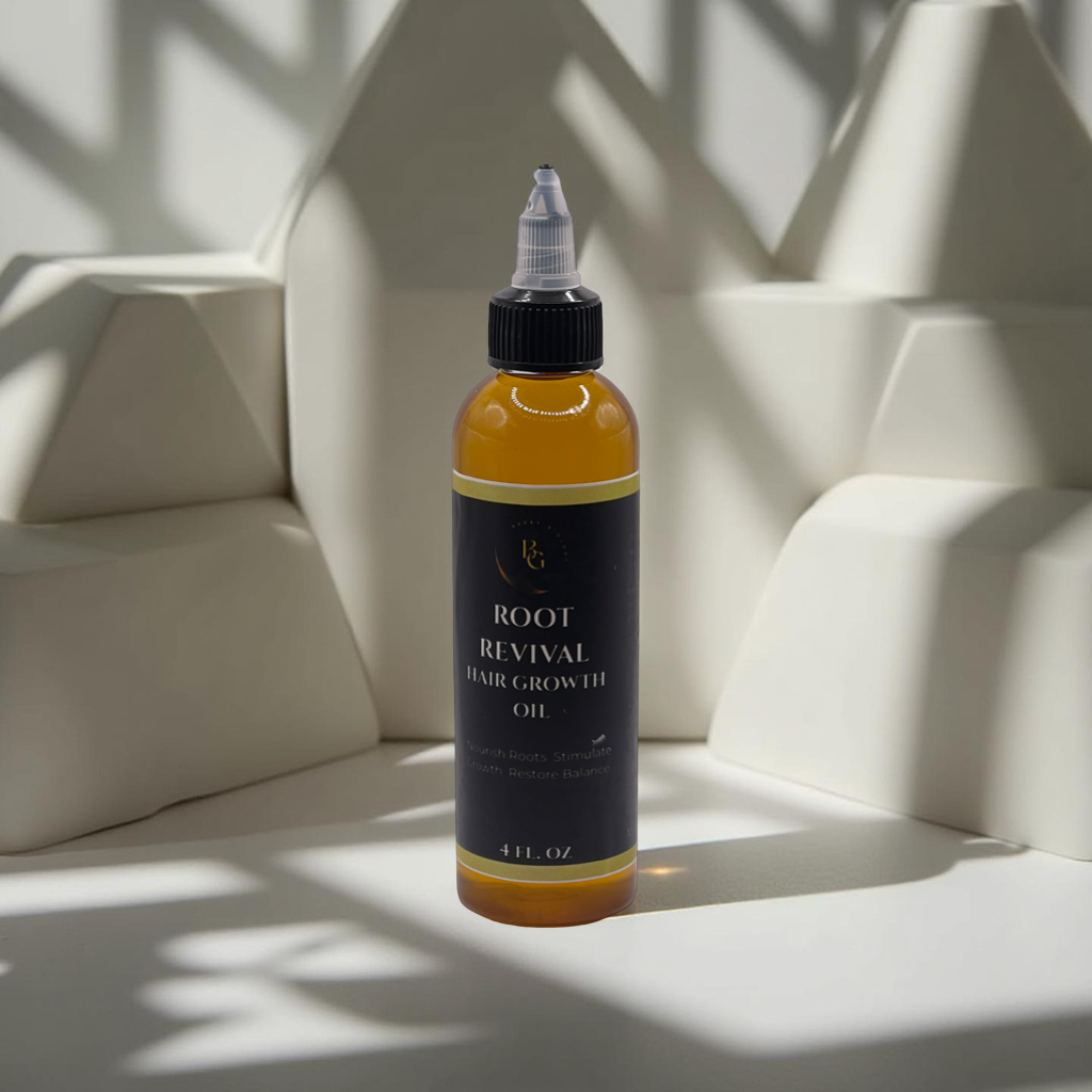 - Root Revival Hair Growth Oil (4oz) – A nutrient-rich blend that penetrates deep to stimulate roots, restore balance, and promote thicker, healthier strands.